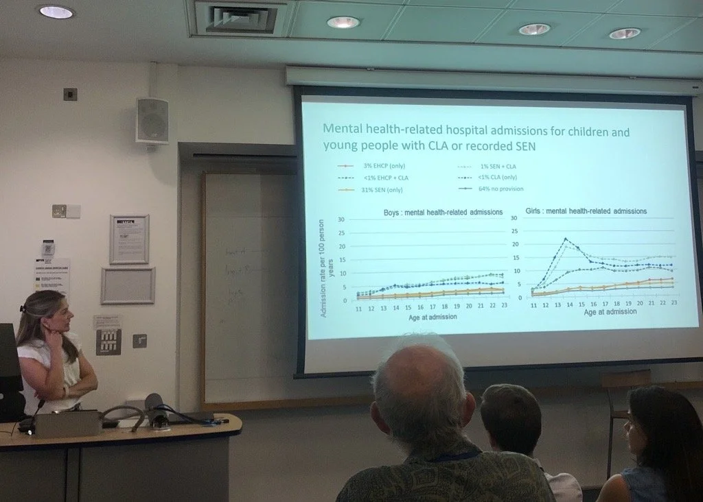 Prof Katie Harron presenting insights from linked health and education data from ECHILD.